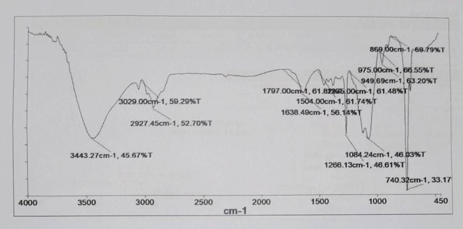 FTIR study is another identification test for drug. The FTIR spectra of pure Moxifloxacin hydrochloride and its mixture with polymer were determined.
