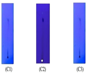 The TLC of sythesis of isatin dervatives was carried out to detect the presence of C1,C2,C3 are the Rf values are tabulated in Table-3.