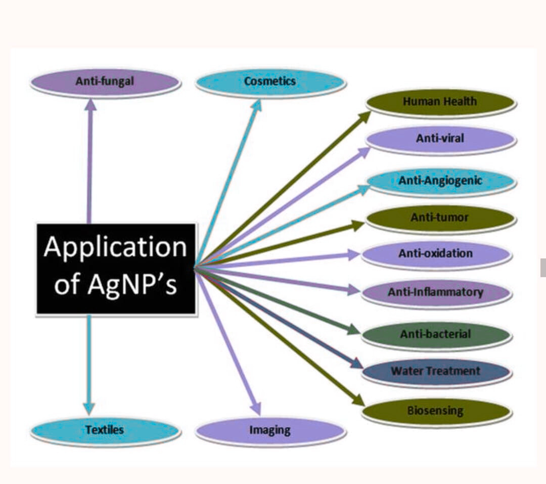 Silver has been utilized for its antibacterial properties for over 5,000 years. As nanoparticles (AgNPs), silver is particularly valued because it combines potent antibacterial effects with low toxicity to human cells. This antibacterial activity is defined as the ability to kill or inhibit the growth of bacteria while leaving surrounding cells unharmed. Beyond this, AgNPs have a wide range of applications, including antiviral, antifungal, and anti-inflammatory uses, as well as in cosmetics, water treatment, healthcare, biosensing, drug delivery, imaging, and textiles.