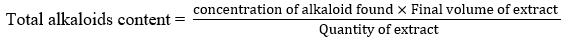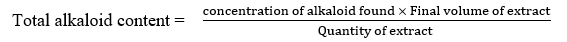 ∴ The total alkaloid content (%) was found to be 1.472