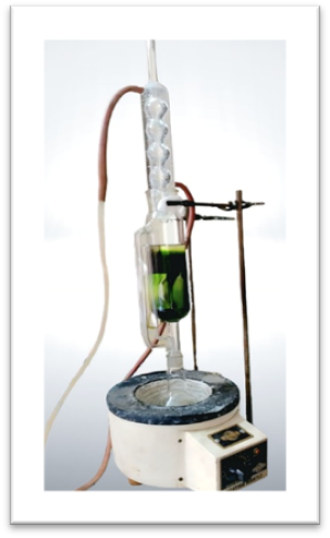 25 grams of finely powdered T. Procumbens leaves are packed in a thimble and placed in the soxhlet apparatus. And pour some amount of ethanol into it. Add 150 ml of ethanol to RBF. Finally, the solvent is boiled to its boiling point, while the condenser is kept cool with a chilled water recirculation. The extraction was carried out for 12 h at 80°C. Later on, the extract was filtered, and the filtrate was kept in the refrigerator for use.