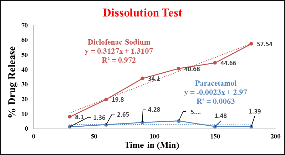 Table 4: Percent drug release by UV spectroscopy. Paracetamol & Diclofenac Sodium