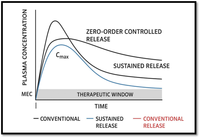 Oral drug delivery remains the most preferred route of administration owing to patient convenience, safety, and flexibility in dosage design. However, traditional dosage forms often fail to maintain consistent plasma drug concentrations, resulting in sub-therapeutic or toxic levels. Sustained-release (SR) formulations are designed to overcome these limitations by controlling drug release over an extended period, thereby maintaining therapeutic levels within the target range (Chien, 2007; Aulton, 2007).