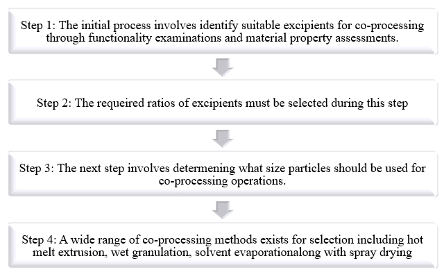 The development of co-processed excipients involves mixing two or more compendial or non-compendial excipients which modify their physical characteristics through simple physical mixing without major chemical transformations.13 The combination of few excipients into a single special composite material through specific manufacturing methods results in improved functionality of the final product.14