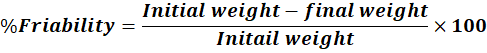 %Friability=Initial weight-final weightInitail weight×100