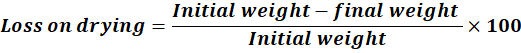 Loss on drying=Initial weight-final weight Initial weight×100