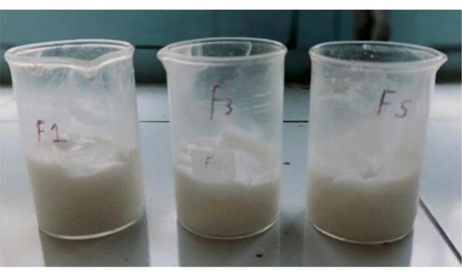Fig No. 7. Formulations F1, F3, and F5 contain okra mucilage [pure form] and rice extract