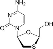Lamivudine is a reverse transcriptase inhibitor used to treat HIV and hepatitis B infections. Lamivudine is a synthetic nucleoside analogue and is phosphorylated intracellularly to its active 5'-triphosphate metabolite, lamivudine triphosphate (L-TP). This nucleoside analogue is incorporated into viral DNA by HIV reverse transcriptase and HBV polymerase, resulting in DNA chain termination.[1-2]