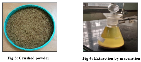 Datura seed extraction (maceration method): For the preparation of the extract, Datura seeds were first dried for 7–10 days and then crushed into a coarse powder. A total of 50 g of this crushed seed powder was added to a jar containing 250 mL of an ethanol-water mixture for solvent extraction. The jar was sealed and stirred every 6–8 hours for a period of 48 hours at room temperature to allow maceration. After maceration, the mixture was filtered using Whatman filter paper or muslin cloth to separate the liquid extract. The solvent from the filtrate was then evaporated using a water bath maintained at 50°C or by air-drying. The final concentrated extract was stored in amber-coloured bottles to protect it from light and maintain its stability11.