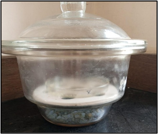Moisture content is an important factor that influences the flexibility and shelf life of transdermal patches. To assess this, the patch was first weighed, then stored in a desiccator containing fused calcium chloride for 24 hours at room temperature. Afterward, it was reweighed, and the percentage of moisture content was calculated using the formula: