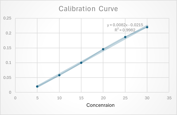 In conclusion, the method proved effective for estimating the amount of Dapagliflozin in tablet dosage forms containing 10mg. The validation parameters demonstrated that the method is linear, precise and repeatable, ensuring reliable results. Furthermore, the method's simplicity in calculation and ease of execution make it ideal for routine analysis of marketed formulations. It is also suitable for use in dissolution testing, offering an efficient and practical approach for quality control in pharmaceutical settings. This method could be readily adopted for consistent and accurate monitoring of Dapagliflozin in various dosage forms.
