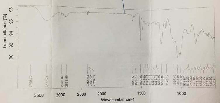 A standard UV solution was analyzed within the range of 200 to 400 nm, showing an absorption peak at 222 nm. The absorption spectrum for Dapagliflozin is presented in Figure 3.3.
