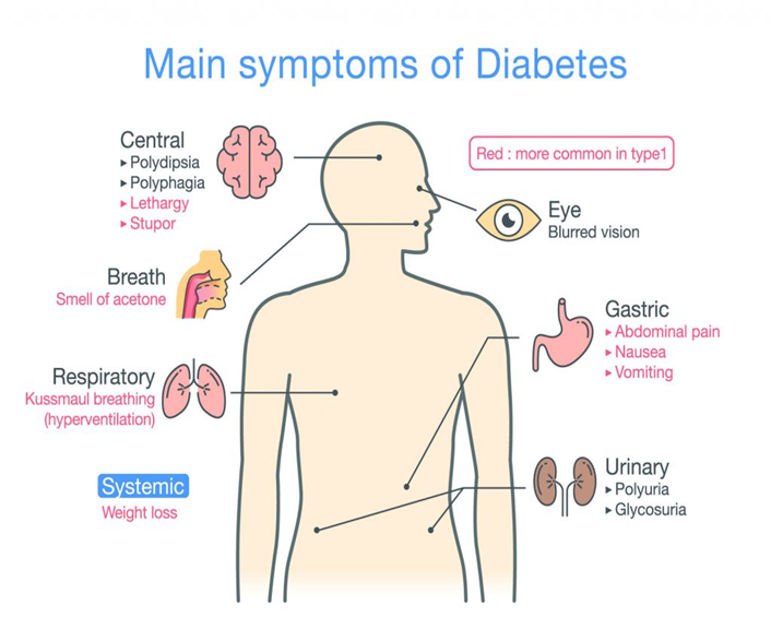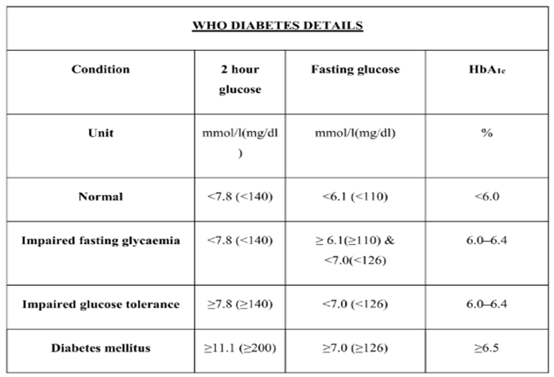 Diabetes is characterized by elevated blood glucose levels, either in the fasting state or after meals. Persistent hyperglycaemia in diabetes mellitus (DM) contributes to progressive damage, dysfunction, and eventual failure of various organs and tissues, notably the retina, kidneys, peripheral nerves, heart, and vascular system1.