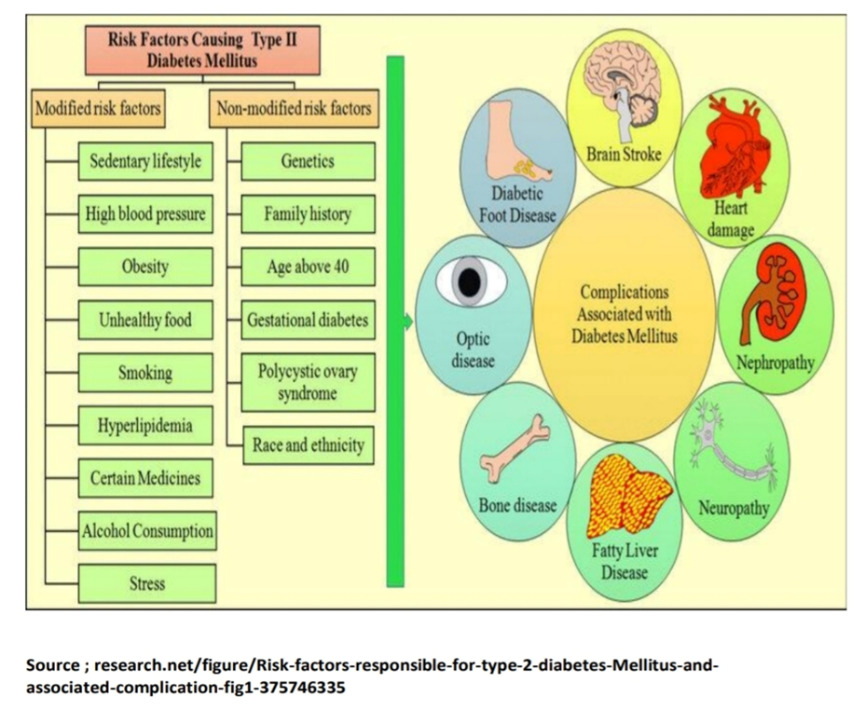 Diabetes particularly when poorly controlled can lead to range of serious complication. All of these factor contribute to the long -term complication of diabetes which include –