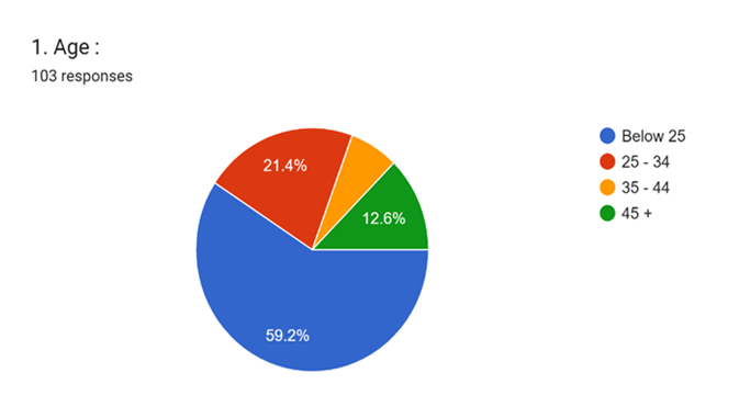 The study included 103 respondents, selected randomly, from four age groups: below 25, 25–35, 35–44, and above 45 years.