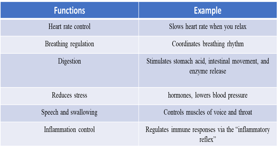 The vagus nerve was first studied for its role in heart rate, digestion, and the autonomic nervous system. Researchers found that stimulating the vagus could slow the heart and affect respiration.
