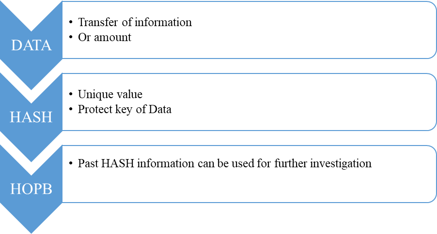 Three steps are used by blockchain technology to improve the security of certain data: 1) Data 2) Hash 3) Hash of the Previous Block (HOPB). The security key connects these three phases [12]