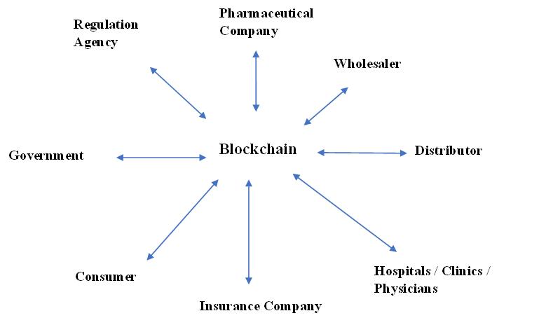 1. Blockchain technology in the pharmaceutical industry: The pharmaceutical industry uses blockchain technology for a number of purposes. One of the primary issues is security, which is resolved by validating transactional data blocks using cryptographic technology [16]. To further discourage theft, drug traceability has been improved. Digital signatures are used for quality control from the manufacturer to the pharmacy, and data miners, blockchain chaincodes, and medical records are utilised to ensure consistent quality [17]. Press Atlantis. By using this method, verification checks that are placed across the supply chain system authenticate serial numbers [18].