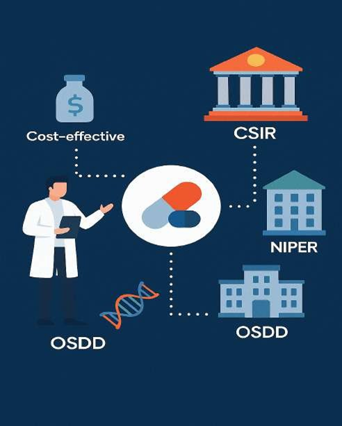 India has demonstrated strong potential in integrating repurposing within its pharmaceutical innovation ecosystem [16]. Government bodies such as CSIR, ICMR, and NIPER have established computational and experimental programmes that utilise both modern and traditional pharmacological knowledge [67]. The CSIR-Open Source Drug Discovery (OSDD) initiative has already yielded promising results for tuberculosis and COVID-19 [73].