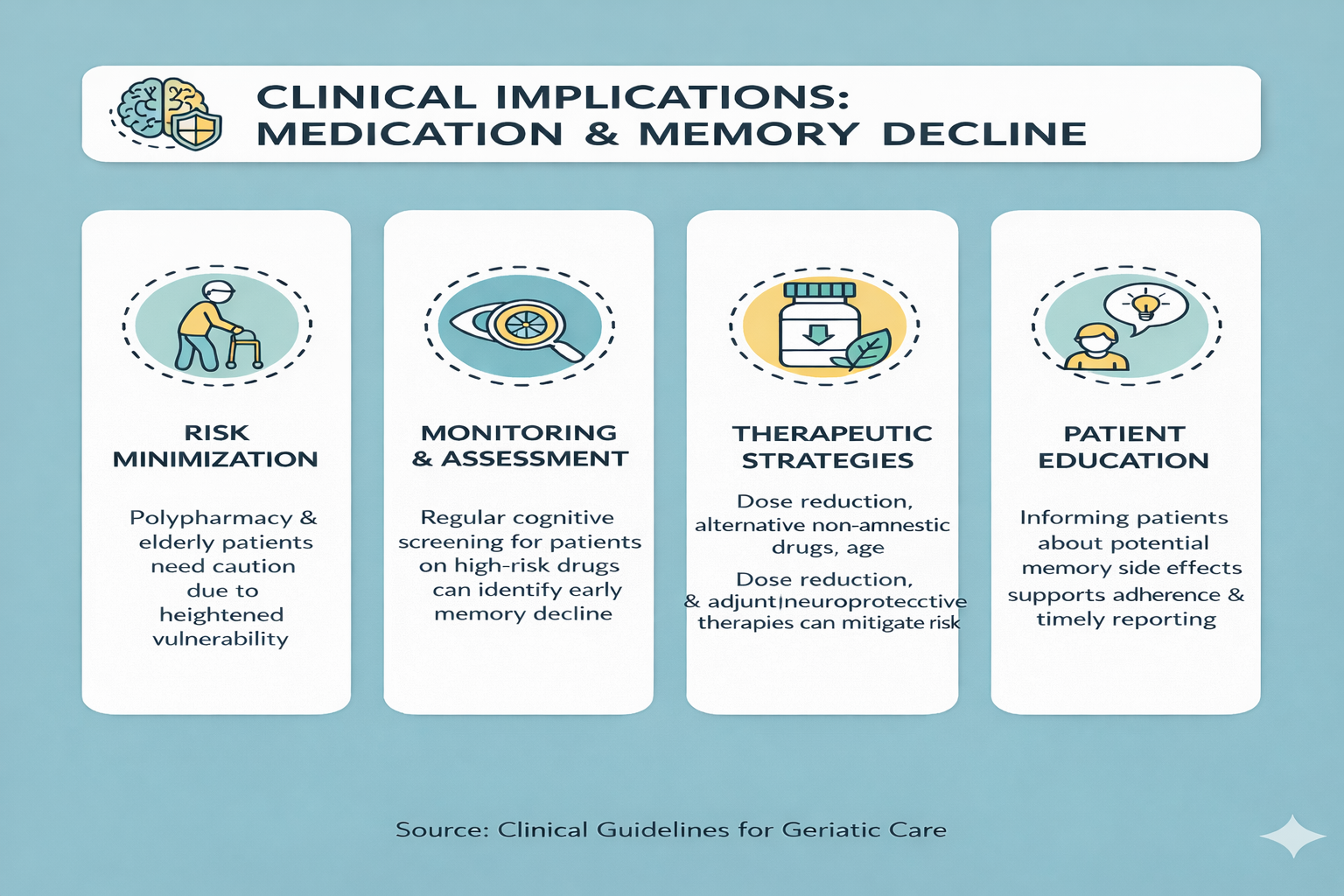 Large-scale pharmacovigilance analyses utilizing big data approaches have revealed extensive links between pharmacotherapy and memory-related adverse events. A study encompassing more than 370 commonly prescribed medications found that cognitive side effects are not limited to central nervous system drugs but also occur across cardiovascular, metabolic, and immunological agents. Statistical modeling identified female sex and early treatment phases as leading risk factors, potentially reflecting hormonal modulation of drug metabolism and neuroinflammatory sensitivity. These findings underscore the need for precision surveillance systems and gender-informed risk assessment in medication safety management[32,33].