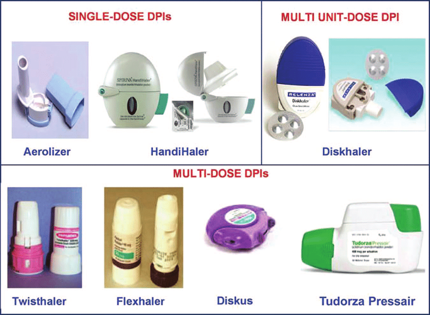 Figure 4: Different types of dry powder inhales (Single -Dose, Multi unit dose, Multi dose DIPS)