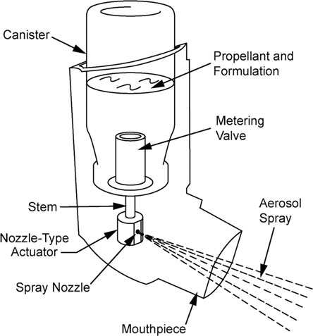 Canister: Holds the medication in a solution or suspension along with a propellant.
