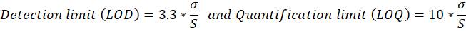 Where, σ = the standard deviation of the intercept and S = slope of the calibration curve.