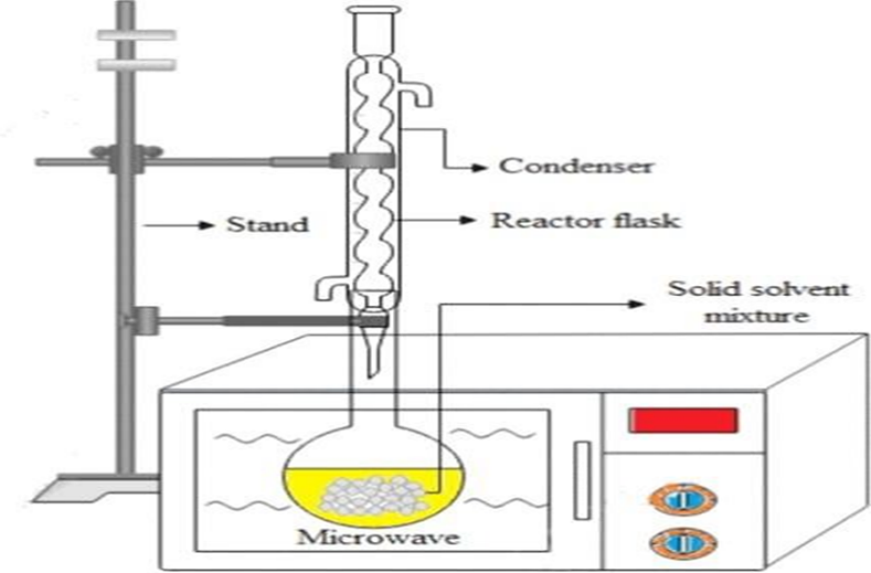 The extraction vessel is a microwave-safe container that the extraction vessel is a microwave-safe container that holds the sample material and solvent mixture. It is typically made of glass or other suitable materials that can withstand microwave radiation. The sample material is usually finely ground or chopped to increase the surface area available for extraction. It is then mixed with a suitable solvent in the extraction vessel. The solvent choice depends on the nature of the target compounds and their solubility. The extraction vessel is placed under microwave irradiation, which generates and delivers microwave energy to the solution. The applicator ensures uniform and controlled heating of the entire extraction vessel. Microwave power levels can vary depending on the specific application and the characteristics of the sample. When the microwave energy is applied, the solvent absorbs the energy and rapidly heats up. The heat causes the solvent to boil and creates internal pressure within the sample, leading to the rupture of cell walls and the release of target compounds.13 To enhance mass transfer and ensure uniform heating, the sample may be stirred or mixed during the extraction process. This promotes efficient extraction by facilitating the contact between the solvent and the substrate molecules. Parameters such as microwave power, temperature, and extraction time may require optimization based on the sample characteristics and the desired compounds. Safety precautions must be followed when performing microwave assisted extraction, as microwave radiation can be hazardous