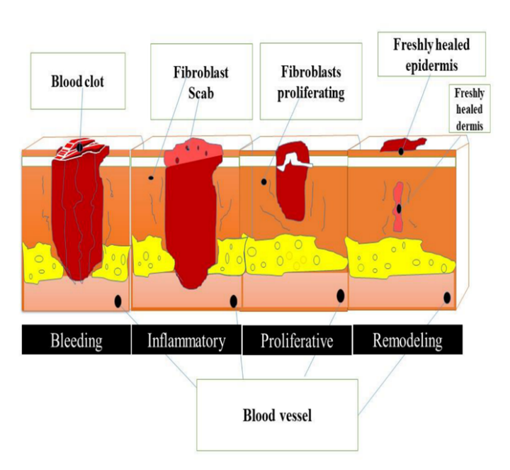 (For example, one that takes longer than 12 weeks to recover). Regrettably, these persistent injuries (mainly diabetic foot ulcers, pressure sores, and venous ulcers) represent a significant region with unmet health requirements, rising significantly worldwide. The processes our bodies employ to repair injuries are well comprehended and entail intricate interactions among inflammatory mediators and cells. Injuries have the ability to heal naturally by sutures or staples can be used to bring the edges together, or secondary aim or alternative methods that facilitate healing through primary intention [1].