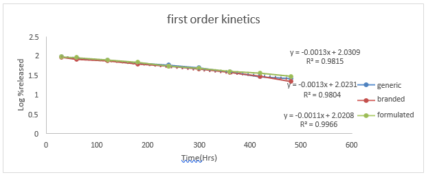 First order plots of Linagliptin tablets (Formulated, Branded, Generic Tablets)