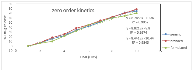 Zero order plots of Linagliptin tablets (Formulated, Branded, Generic Tablets)