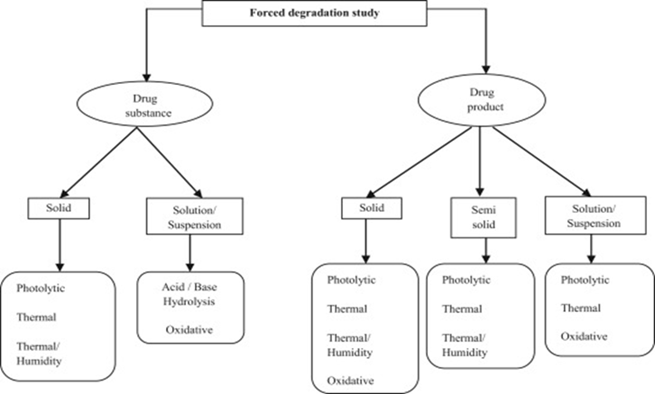 Forced degradation, also known as stress testing, refers to the process of deliberately subjecting a new drug substance or drug product to conditions more severe than those used in accelerated stability studies. This is done to induce degradation rapidly and extensively, which serves several critical purposes in pharmaceutical development. Forced degradation is essential for demonstrating the specificity and robustness of stability-indicating analytical methods by ensuring these methods can distinguish the drug substance from its degradation products. Moreover, it provides valuable insight into the degradation pathways and chemical behavior of the molecule, helping to elucidate the structure of degradation products and understand their formation mechanisms. This information is vital for formulation development and packaging design, helping to optimize product stability and ensure that protective measures in packaging adequately safeguard the drug during its shelf life[13],[14].