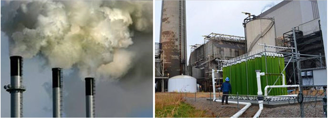 Fig no. 6 Carbon reduction technology-Flue gas from the CO 2 emission plant provides carbon dioxide to feed algae in fuel tanks [47]