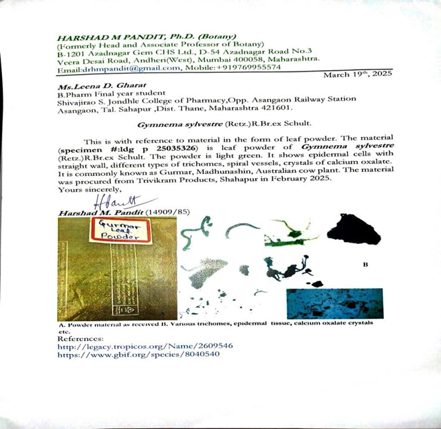 The pharmacognostic and phytochemical evaluation of Gymnema Sylvestre leaves validates its traditional use in herbal medicine. The presence of diverse bioactive compounds supports its potential role in managing diabetes and related disorders.