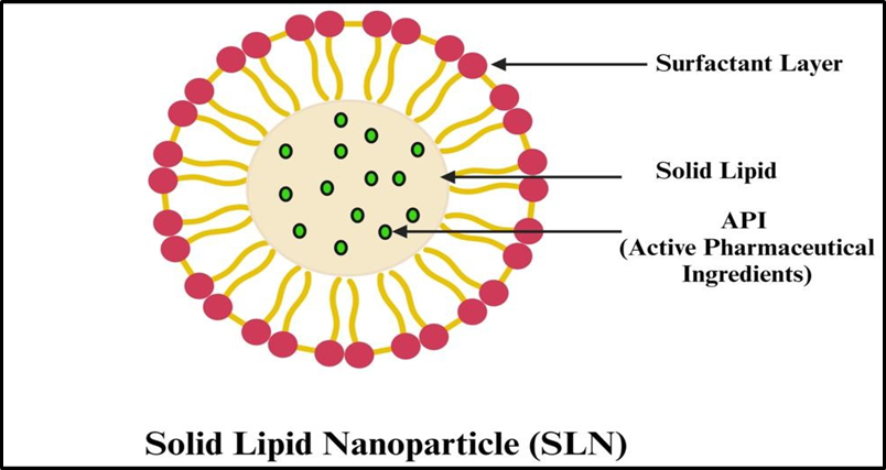 To provide more efficient treatment, delivery techniques based on the advantages SLNs have been developed. To overcome the limitation of conventional technological, SLNs have attracted attention because of their unique technological and biological properties. Consequently, SLNs have emerged as feasible nano cariers for drug delivery that complement polymeric nanoparticles. Drug delivery systems encompass formulations, approaches, and technologies for specific purposes. The goal of successful drug delivery is to reduce problem such as side effects, non- specifically, burst or interrupted release, and toxicity. The characteristics. SLNs biodegradability and biocompability, which are based on the nature of the lipid, provide diverse possibilities for administration, and lower the of safety issues.