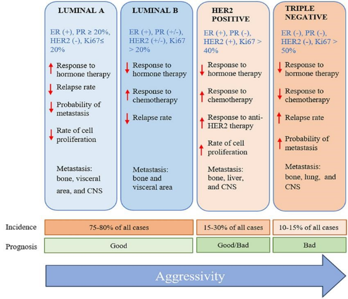 Breast cancer has been classified by using diverse criteria, including histology, molecular characteristics, and the expression of specific biomarkers. The establishment of the specific characteristics of breast cancer tumours allows for the selection of the most effective treatment. Regarding the molecular perspective, among the various subtypes ofbreast cancer are luminal A, luminal B, normal-like, HER2-enriched, basal-like, and triple-negative. The triple-negative subtype comprises 10–20% of all cases of breastcancer. It is found at a greater prevalence in Afro-descendants, women under 40 years ofage, and/or thosewith a mutation in the BCRA1 gene.(3,4)
