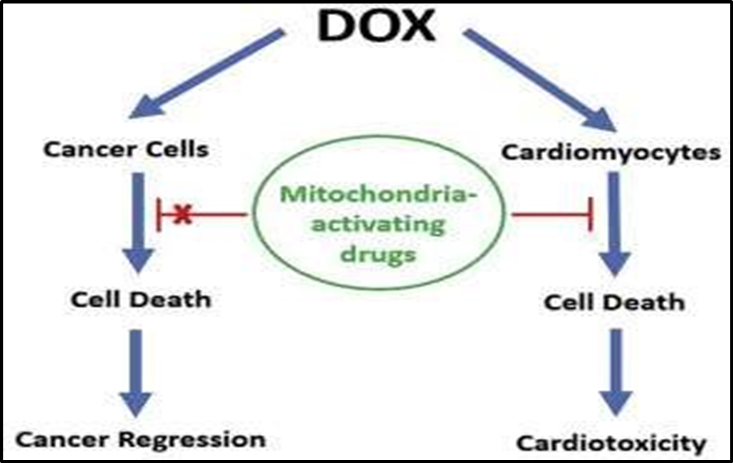 There are two proposed mechanisms by which doxorubicin acts in the cancer cell (i) intercalation into DNA and disruption of topoisomerase-II-mediated DNA repair and (ii) generation of free radicals and their damage to cellular membranes, DNA and proteins.