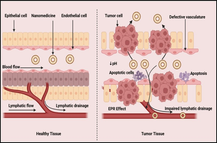The challenges posed by conventional therapies, causing indiscriminate damage to body tissues, have been effectively addressed by the rapid advancements in nanotechnology. This technology provides distinct advantages by enhancing the efficacy of radiation therapy and medication while mitigating side effects. Multifunctional nanocariers leverage the difference between tumour and normal tissues, facilitating the selective transport of therapeutic medications and increasing drug permeability ahe retention. Moreover, the unique physical and chemical characteristics of the tumour microenvironment, including hypoxia , weak acidity, lower PH, unusual temperature gradient, and over expressed protein and enzyme, can be harnessed to control the release rate of pharmaceutical from nano carriers.