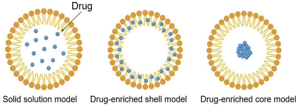 Solid lipid Nanoparticles are composed of a matrix, surfactants, and sometimes co- surfactants at physiological temperature. SLNs can be formed through various methods, including high- shear homogenization, and ultrasound, hot homogenization, cold homogenization, strong – pressure homogenization, solvent emulsification, evaporation, and microencapsulation. A microemulsion is an easy method that does not require high- level equipment or high energy input and uses an organic solvent. In addition there are some drug incorporation model for SLNs , such as the solid solution and core-shell models. In the drug – enriched shell model, when the recrystallization temperature of the lipid is reached, a solid lipid core is generated, and the drug is concentrated in the SLN liquid outer shell by decreasing the dispersion tempreture. Cooling the nanoemulsion in the drug rich core model result in the saturated of the dissolved drug in the molten lipid at saturation solubility. After precipitation of the drug occurs before recrystallization of the lipid, recrystallization of the lipid surrounding the drug occurs because of extreme cooling.