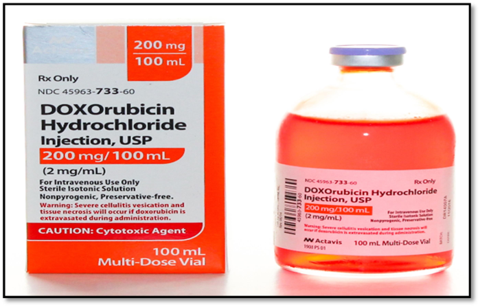Doxorubicin is part of the anthracycline group of chemotherapeutic agents. Doxorubicin may be used to treat soft tissue and bone sarcomas and cancers of the breast, ovary, bladder, and thyroid.