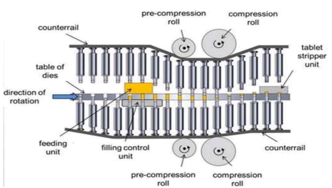 A fast-dissolving drug delivery device is a tablet that dissolves or disintegrates in the oral cavity without the need for water or chewing. The majority of films for fast-dissolving delivery systems need to include additives that mask the flavor of the active ingredient. It is composed of hydro-alcoholic solvents and a water-soluble component. After that, the molding is done under specific pressure levels and with a variety of heating methods. Less pressure than is required for conventional tablet compression should be used. The figure 1 below shows the procedure.[23]