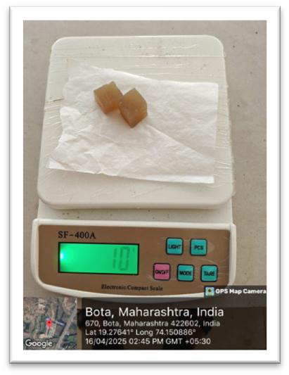 The firmness of the gummies was assessed using a texture analyser to ensure product uniformity. To evaluate crushing strength, three units from each formulation were tested using a MAC hardness tester, and the average value was calculated for comparison.[11]