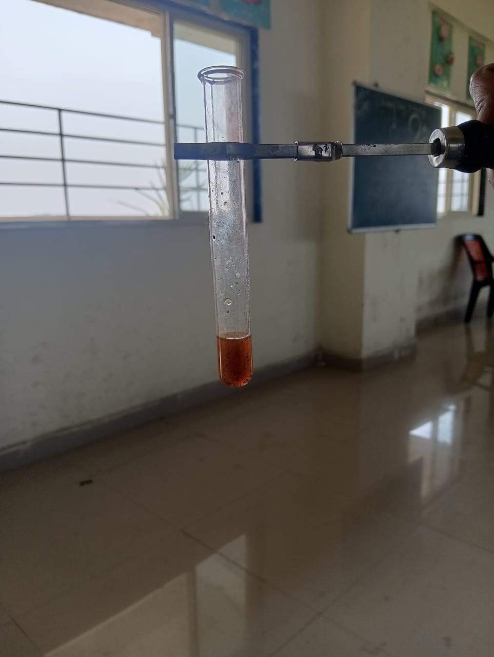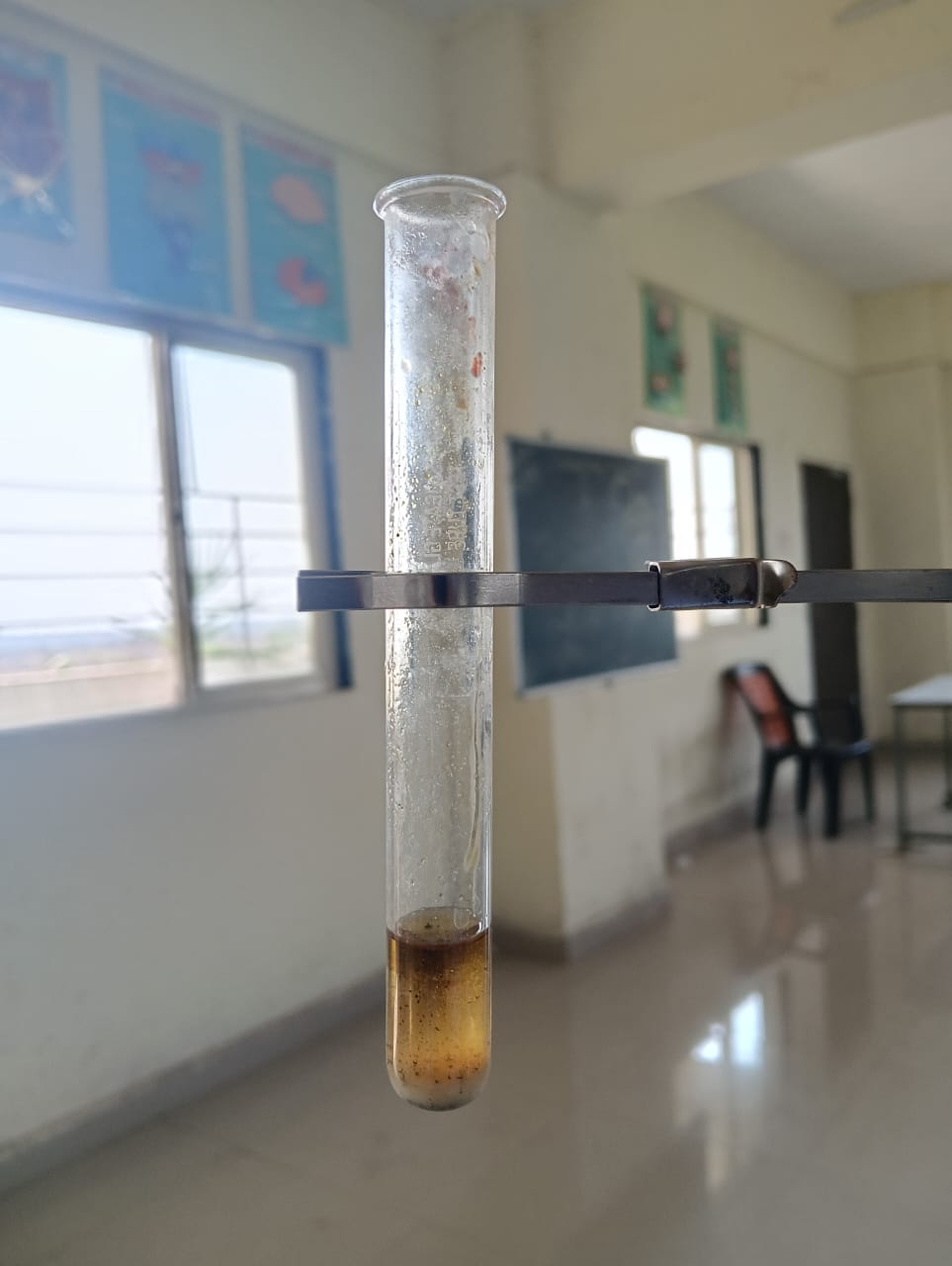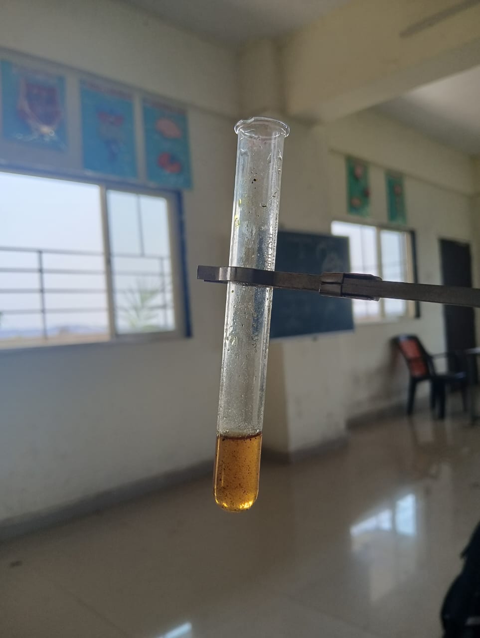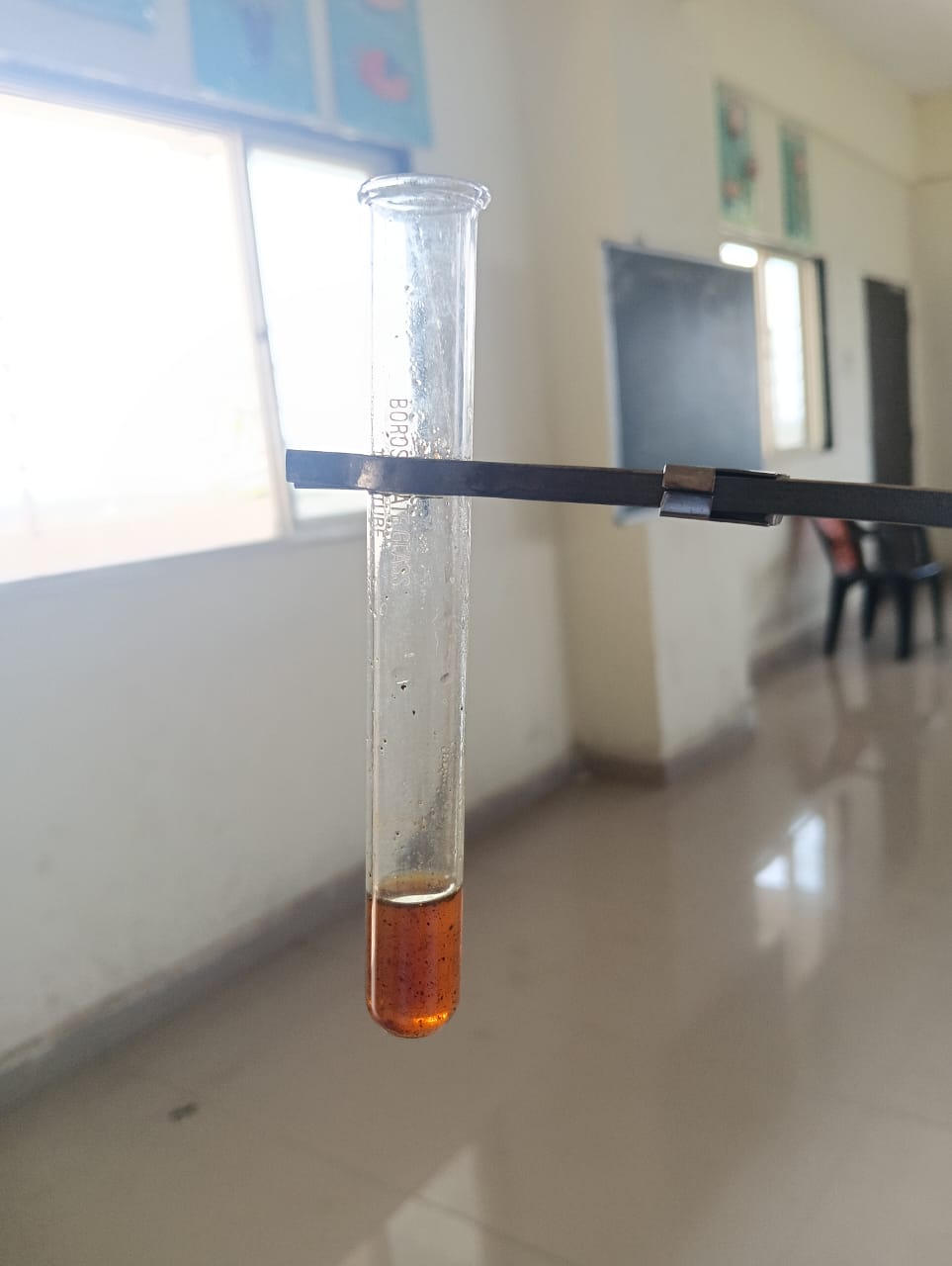 1.0ml of plant extract was taken and then add 1.0 ml of saturated solution of picric acid was added.Yellow colour appears.