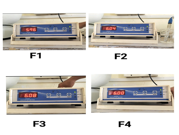 The pH of cream formulation were determined by using digital pH meter. Take 1gm of cream and dissolved in 10ml distilled water and keep apart for two hours. Then the measurement of pH of formulations was done by dipping the glass electrode completely into the cream system three times and the average values are reported in table 4b.