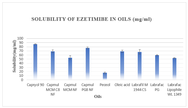 The main aim of the present study is to formulate and evaluate ezetimibe nanoemulsion to enhance its solubility, stability, and therapeutic efficacy. Ezetimibe, a poorly water-soluble antihyperlipidemic drug, exhibits limited bioavailability, making it a suitable candidate for nanoemulsion-based delivery. Oils, surfactants, and co-surfactants were screened through solubility studies, leading to the selection of Capryol 90, Tween 80, and Transcutol HP as optimal components. Pseudo-ternary phase diagrams were constructed to identify suitable nanoemulsion regions, and formulations were prepared using aqueous titration followed by homogenization. The developed formulations were evaluated for thermodynamic stability, droplet size, polydispersity index (PDI), zeta potential, viscosity, pH, drug content, and in vitro diffusion. Among the tested formulations, F2 demonstrated superior characteristics with a droplet size of 97 nm, a zeta potential of –28.3 mV, and drug content of 95.92 ± 0.62%. In vitro diffusion studies confirmed a rapid and sustained drug release profile, achieving 96.5% cumulative release within 60 minutes. FTIR analysis confirmed drug–excipient compatibility without evidence of chemical degradation. The findings suggest that ezetimibe nanoemulsion represents a promising drug delivery system to overcome solubility limitations and improve therapeutic performance.