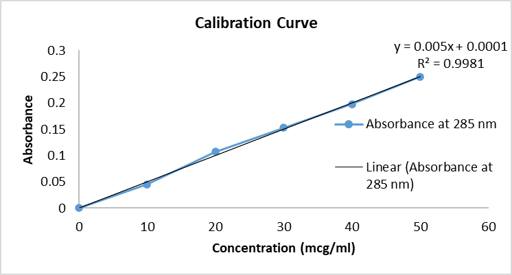 Standard calibration curve of Dexlansoprazole at 285 nm follows Beer’s -Lamberts Law in the concentration range 2-10 mcg /ml.