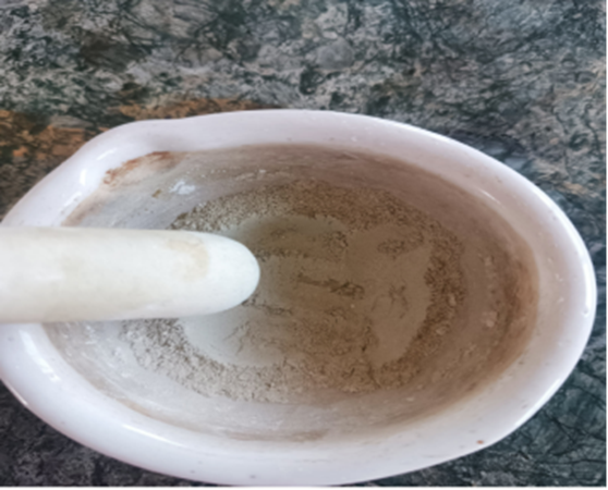 ?Taste: A pinch of powder was taken on the taste bud of the tongue to detect the taste.