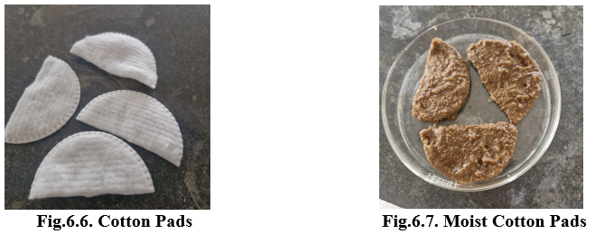 Physical Appearance: The prepared eye patches were observed to be uniform in texture, smooth, and free from air bubbles or cracks. The color was brown due to herbal ingredients like licorice and potato extract. The patches were soft, flexible, and easy to handle.