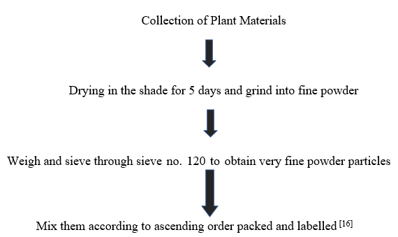 Materials- Neem, Tulsi, Shikakai, Hibiscus, Brahmi, Aloe vera powder, Liquorice, etc.