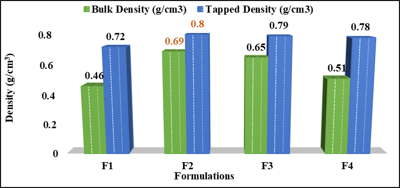 Figure 7: Bar graph representation of bulk density, tapped density and carr’s index